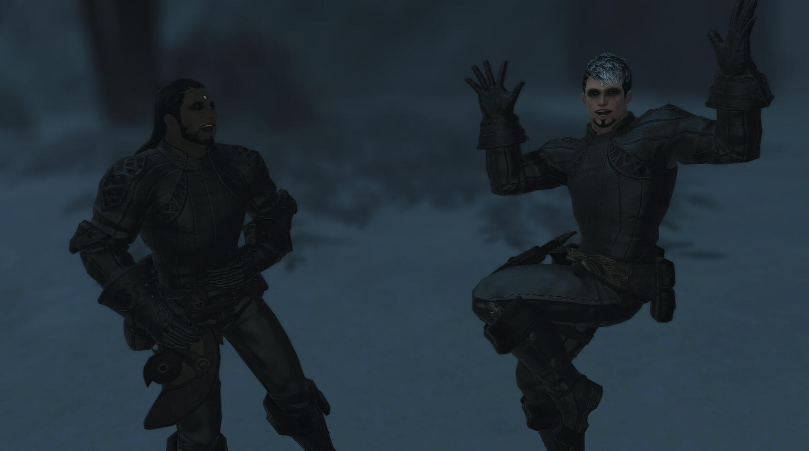 Slowly, she turned to look at the entrance of the building. Standing there, looming, was a very tall, heavily-muscled Garlean zombie, splattered with blood given the violent way he died. He moved closer and closer to Morana.Step … step… step…Step… step… step…Morana was terrified. She realized he was the Ashkin she raised! Perhaps out to seek revenge?!At first, she glared. That glare-thing she does is actually natural, her other fear response kicks in after it. She tried, but her Ashkin kept his stare locked on hers. Something you should know about Morana - her eye contact is forced. She’s trained herself to do it for longer than her glare would otherwise hold. So, she broke it first, unnerved, and then her deeper fear response settled in. She shuddered, let out a cry of terror, and bolted. All around the building did she run.What happened?Well, her Ashkin followed. Of course. In confusion.Because why was his necromancer running from him?...So we have a powerful necromancer running from her own zombie. All around. And her zombie being utterly confused. Eventually, he had her unintentionally cornered. She yelled out, asking what he wanted. He tilted his head. He had no answer. He did not want anything. So, he remained silent. Morana yelled, ‘Who are you?’ That, he knew the answer to.Sort of.‘I do not know,’ he said in an echoey, gravelly, tone.She tried snapping at her zombie to go away. This confused him - but, wanting to obey, he took a few steps back. Morana did not specify a distance.Morana, thinking he was doing this on purpose and waiting to strike, stumbled back until hitting a wobbly display stand. Something fell and shattered, sending glass into her hand and causing her to scream. The Ashkin began to move closer again.Step…step…step…Terrified, Morana snapped at him again to leave her alone. She kept a terrified glare on him as he kneeled down.Was this it? Would this be how she died?No. Her Ashkin grabbed her wrist and gently pulled the shard of glass out of her hand. His gaze still locked on her. He said to her in a matter-of-fact tone, ‘No. You are wounded. You need aid. I will help you.’ Already defying her orders! Not that she knew it at the time that she even could control her Ashkin, mind you.But even then, when the soul wasn’t whole, she did not take the reins and send him off by a true, magical command. The Ashkin sat next to her, unsure of his purpose, but knowing she needed help. Morana was that angry kitten, theoretically hissing, spitting, and scratching. She glared at her zombie and tried to scoot away, but he moved closer.She shoved at him, clenched her jaw, clenched her fists… he did not budge, He then said, in a matter-of-fact tone, ‘You need a blanket’. He did go away after saying that. But only for ten minutes. Then, he returned with a blanket for her. It took Morana a while to calm down around Ced. But he got through to her and never left.Eventually. He became her brother.”