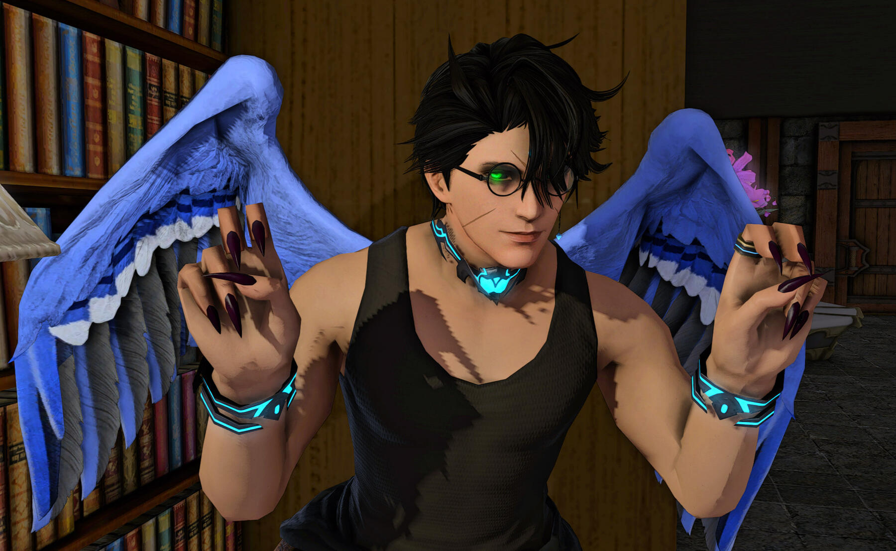 EyesIn all cases, birdsent have black sclera (white of their eyes). In some cases, their eyes mimic the bird that their wings and legs do, with striking glows. In other cases, they can have glowing eyes of various colors, like reds, purples, or amber that do not pertain to their bird species. Finally, they can express as purely jet black, though it’s speculated if this is tied specifically to the bird-type (as in, their bird has naturally jet black eyes) or can show up as a random trait.DentitionBirdsent have a mouth full of sharp teeth, indicating a diet of strict carnivory. Though they can consume multiple types of food and are technically omnivores, they do favor meat. Like how iguanas can devour vegetation with sharp teeth, however, this applies to the birdsent. They can very much enjoy non-meat-based foods and their bodies would not reject it.Wings, Tail Feathers, & LegsBirdsent take on the wings, tail feathers, and legs of a certain type of bird. It’s speculated one’s soul will reflect what morph they will take. For example, one of the original birdsent had the soul of a ‘blue jay’, whereas another had the soul of a ‘grackle’, and this reflected in their wings.Since this species is lab-created, and thus not natural, they cannot reach around and touch most of their wings. However, ironically, the birdsent reflect the natural way of things by relying on their flock for preening, just like birds do in the wild or in captivity.Some parts of birdsent wings will have a dull glow to them, and that depends on the voidsents’ aether. Most of the time, the colors on the wings reflect their bird species, but that is not always the case. This also applies to their tail feathers, which, like in actual birds, aid them in flight.Finally, the birdsents’ legs are that of a bird, taking on the coloration of the bird they’re meant to be. However, they do not change structurally from the mix of a human and birds’ leg, and nor do their talons, which in all cases curve like a predatory bird, regardless of the bird species they are meant to be.ClawsAll birdsent have claws rather than fingernails, curved quite like talons in some cases. These are present on their avian feet as well, which can do considerable damage upon kicking.OdditiesThere are a number of oddities that come with being a birdsent. All of them have jerky, odd movements like that of a bird. It can come across as very inhuman. Often, it is not realized they’re doing this until it’s pointed out, but they cannot help it even if they tried. The typical fluid motions of what they used to be have turned into mostly twitch-like actions.A more rare trait in birsent is pointed ears, if they originally had rounded ears, like hyuran or garlean birdsent. Though becoming one of these creatures is not strict to pureblooded garleans, the process works well on them, because their aether is least likely to explosively clash with the process and complicate things.In that same vein, the Garlean Third eye (which is keratin, the gem on the middle of their forehead) will often ‘corrupt’, turning into the color of one of their feathers. This doesn’t impact their ability to use the third eye for spatial awareness.Some speculate it aids in detecting or even seeing aether, but this is an advanced sense that would not be present initially in a freshly turned birdsent.Of note, they are not created with the ability to fly and need to learn it.