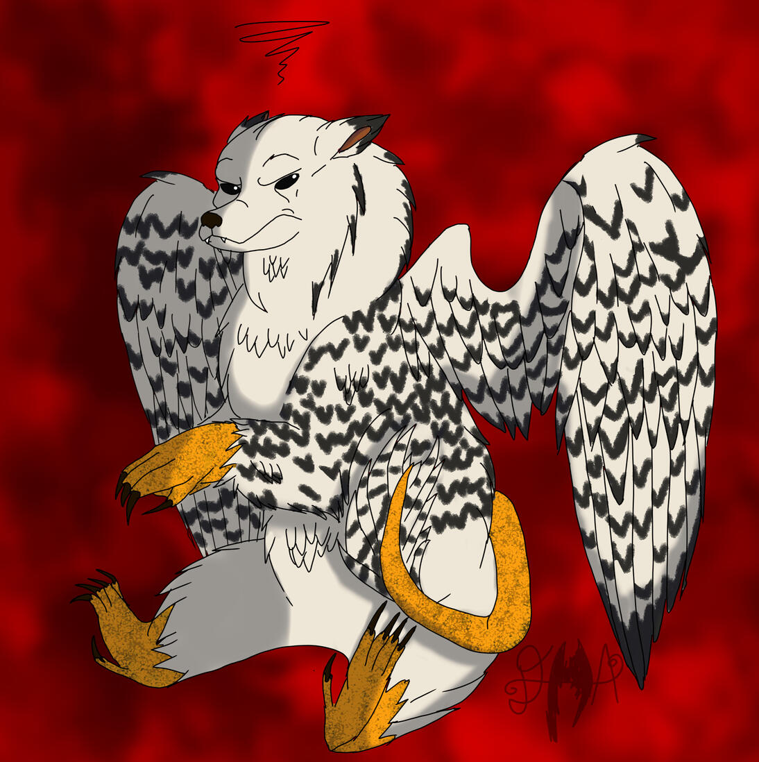 All birdsent have a ‘limit break’ form, which requires a large burst of aether to access. Due to sample corruption from the species, this form is indeed a gryphon. Rather than turning into Feliformia, however, their non-avian counterparts are Caniformia.All gryphon forms are covered with feathers rather than fur. All have wings and are quadrupedal. All forms have a long, whip-like reptilian tail with tail feathers at the end. They do not have legs of their caniformia parts - rather, they have purely bird legs for front and back.Where the forms sometimes deviate is on the face - some forms have beaks, some forms have muzzles. It seems to be random, but beaks trend slightly more rare versus muzzles.